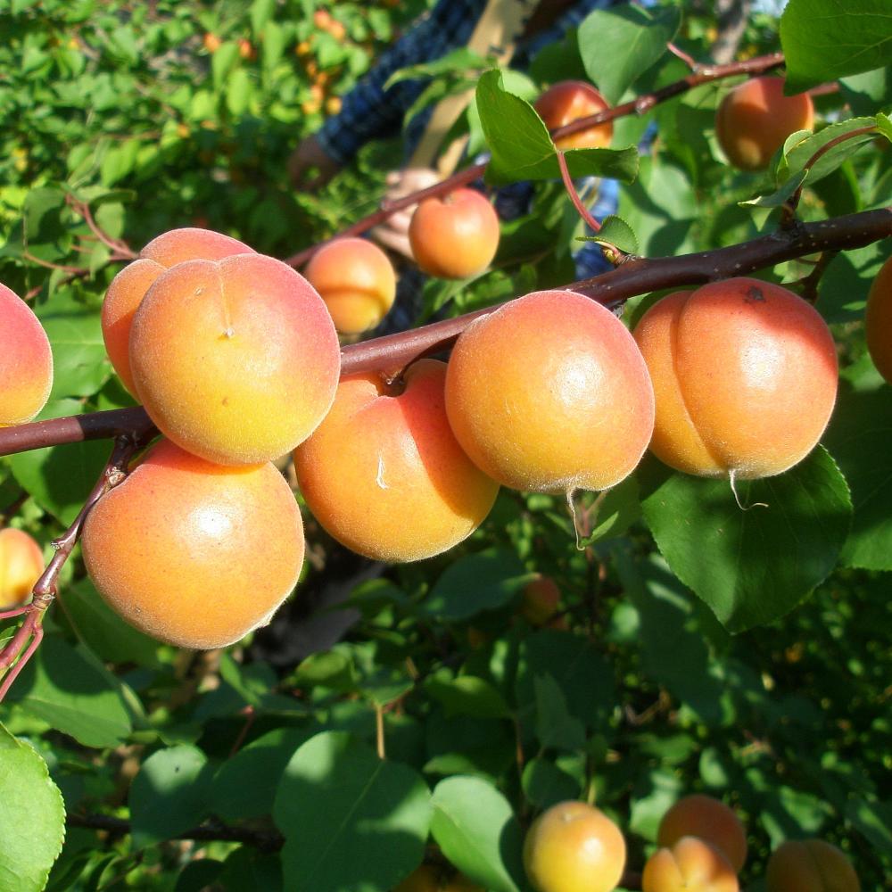Абрикос Амур - плоды массой до 35 г, в дождливые годы не растрескиваются, созревают в конце июля - начале августа. Форма плодов округло-вытянутая к верхушке в виде клювика. Окраска плодов ярко-желтая с карминовым румянцем и многочисленными точками. Мякоть нежная, плотная, хрустящая, средней сочности, приятного кисло-сладкого вкуса. Косточка хорошо отделяется. Зимостойкость достаточно высокая.