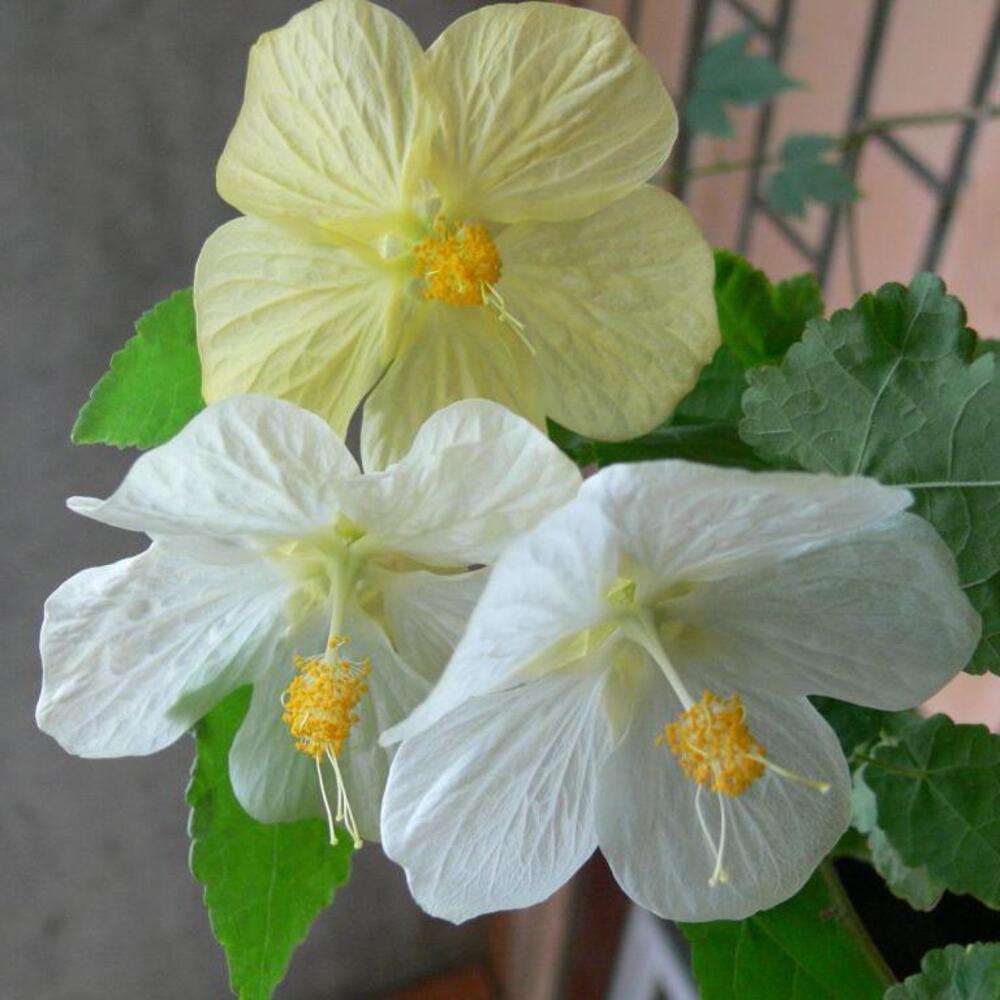 "Abutilon Ines - гибрид мегапотамского абутилона. Куст среднерослый, достигает в высоту 60 см. Форма кроны - ампель или полуампель. Годовой прирост составляет не более 20-30 см. Листья удлиненные с пильчатым краем, сизо-зеленые. Цветки воронковидные, светло-желтые. Цветение обильное.
