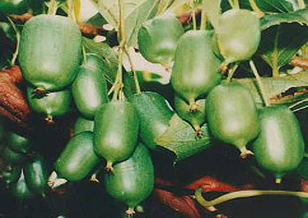 Красивая лиана со светло-зелеными молодыми побегами , изумрудными, опушенными с нижней стороны листьями. У крупномеров актинидии Мома взрослые однолетние побеги приобретают ярко-коричневую окраску. Женский позднеспелый десертный сорт. Первые урожаи дает с середины октября. С одного куста собирают около 0,6 кг не очень крупных (2,7 г) оливково-зеленых сладких тонкокожих плодов с ароматом ананаса.Говоря о достоинствах сорта, следует упомянуть: морозостойкость;не восприимчивость к грибковым и бактериальным инфекциям; неуязвимость для садовых вредителей.Среди недостатков – необходимость близкого соседства мужских растений для ежегодного плодоношения.