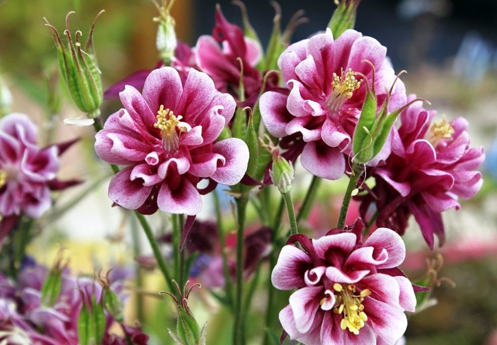 Многолетнее растение из семейства Лютиковые. Аквилегия серии Винки ценится за компактный куст с объемной нежной листвой и возвышающийся на прочных цветоносах букет махровых цветков, которые смотрят вверх и никогда не поникают. Растение невысокое, до 35-45 см. Цветение суперобильное, с конца мая до середины июля. Цветки махровые, красные с белым, 4 см в диаметре. Влаголюбивы. Желательно высаживать в полутени, может расти и на солнечных участках. К почве нетребовательна, предпочитает легкие, хорошо удобренные, дренированные участки. Размножают посевом в открытый грунт в мае или под зиму. При весеннем посеве семена необходимо 2 недели выдержать во влажном песке в холодильной камере. Семена прорастают через месяц при температуре 20-22 о С. Предназначена не только для выращивания в открытом грунте, но и для горшечной культуры.