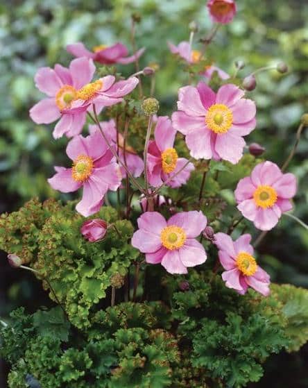 Анемона хубейская Криспа удивляет абсолютно необычной листвой! В начале лета в вашем саду появятся куртины из листьев, напоминающие курчавую петрушку. И насколько же это будет эффектно смотреться! Сильно жатые и гофрированные, сочного салатового цвета с вишневой обводкой по краю – они так и притягивают взоры. Ближе к концу лета над листвой стремительно возвысятся высокие цветоносы с розовыми цветками 7-8 см в диаметре. Они не нуждаются в подвязке и цветут ну очень долго – до 40 дней. Полный восторг, абсолютная красота, всё, что необходимо для современного долго цветущего эффектного сада!