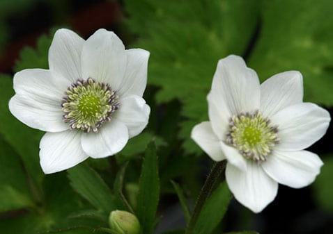 Анемона Левилля — красивый сорт анемоны с крупными белоснежными цветками, несущими на себе лёгкий сиреневый оттенок. Стебли ее лилово-синие и поэтому, белые цветки эффектно контрастируют на фоне стеблей и темно-зеленой листвы. Отлично смотрится вместе с хостами.