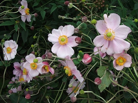 Анемона японская Max Vogel (Макс Вогел) отличается от других видов тем, что на ней расцветает очень много цветов. Цветы нежно-розового цвета и имеют желто-зеленую середину. Семена прорастают быстро, и цвести Анемона японская Max Vogel (Макс Вогел) начинает с августа, а заканчивает в сентябре. Особенности роста: