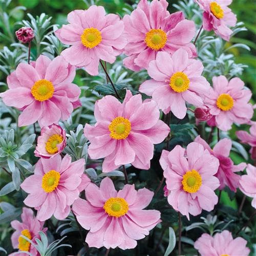 Анемона гибридная Серенада - высота растения 80 см. Цветки розовые. Цветет в августе-сентябре. Цветут обычно рано весной, отдельные виды летом, другие осенью. Разрастаясь, образуют компактные группы.