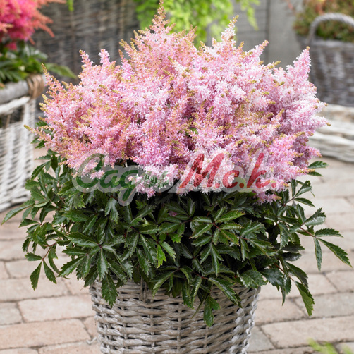 Многолетнее растение из семейства Камнеломковые высотой до 100 см. Листья сложные, тройчато-раздельные, ажурные, блестящие. Цветки мелкие, сиреневые, розовые, реже белые в эффектных плотных соцветиях 30-35 см длиной. Цветет в июне-августе, в течении 30-40 дней. Астильба предпочитает слегка затененные места с суглинистыми почвами. Может произрастать на одном месте до 15 лет. Перед посевом семена стратифицируют, раскладывая на поверхности рыхлой почвы (не заделывая), и накрыв стеклом, помещают в холодное место на 21 день. Проклюнувшиеся семена сажают в горшки в феврале-марте и оставляют в светлом месте, при температуре 18-20 С°. Всходы появляются в течении 2-3 недель. Подросшие растения высаживают в открытый грунт в мае. Астильба, выращенная из семян, зацветает на 2-3 год. Эффектна в групповых, смешанных, бордюрных посадках. Пригодна для выгонки и срезки. Хорошо сочетается с ирисами, хостами, папоротниками.