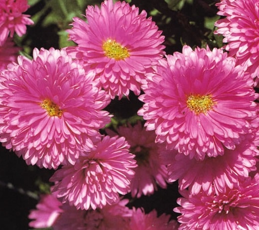 Астра новобельгийская Патрисия Баллард - цветки лилово-розовые, вначале махровые, затем показывают жёлтую серединку. Цветение в сентябре-октябре. Листья ланцетные. Хорошо подходит для срезки. Цветоносы хорошо разветвлённые.