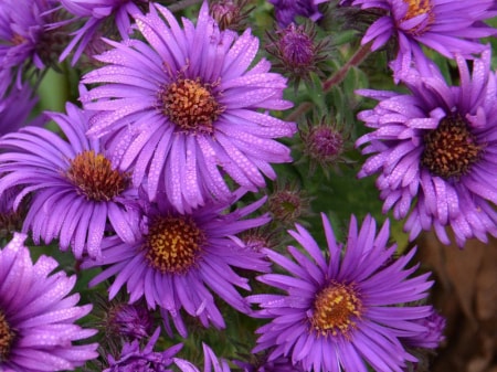 Астра новоанглийская Пурпл Дом - кусты низкие, шаровидной формы, цветки густо махровые, пурпурного оттенка. Высота растения и размер цветка данного сорта зависят от агротехники вращивания.