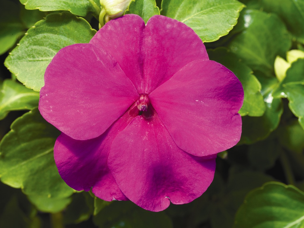 Бальзамин Акцент Премиум F1 Лилак (Impatiens walleriana Accent Premium F1 Lilak) – эффектный, крупноцветковый гибрид от голландской компании Syngenta Seeds. Выращивается как в горшке, так и на открытых клумбах, отличается высокой стрессоустойчивостью и пластичностью к условиям выращивания. Формируется в компактный, ветвистый и облиственный куст, высотой около 25-30 см. Во время цветения превращается в красочный шар, состоящий из довольно крупных и пестрых цветов, в обрамлении насыщенно-зеленых листьев округлой формы. Смотрится нарядно и привлекательно – в подвесных горшках, балконных контейнерах и на клумбах, в одиночных посадках, и в сочетании с другими среднерослыми летниками.