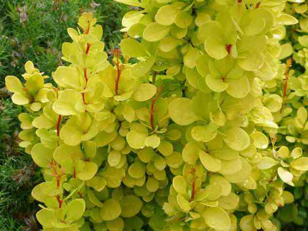Саженцы барбариса Тунберга Sunsаtiоn – лучики солнца среди всего разнообразия растений. Листья барбариса всё лето сохраняют солнечный жёлтый цвет, а осенью окрашиваются в ярко-красный. Плоды барбариса яркие и блестящие обильно украшают побеги. По форме крона напоминает вазу или гнездо. Крупномеры Sunsаtiоn максимально вырастают до метра в ширину и в высоту. Положительные качества у кустарника в том, что он хорошо переносит засуху, а корневая система отлично приживается на любом типе почвы. Саженец не любит большое количество воды, и лучшего всего растёт на солнечных участках.