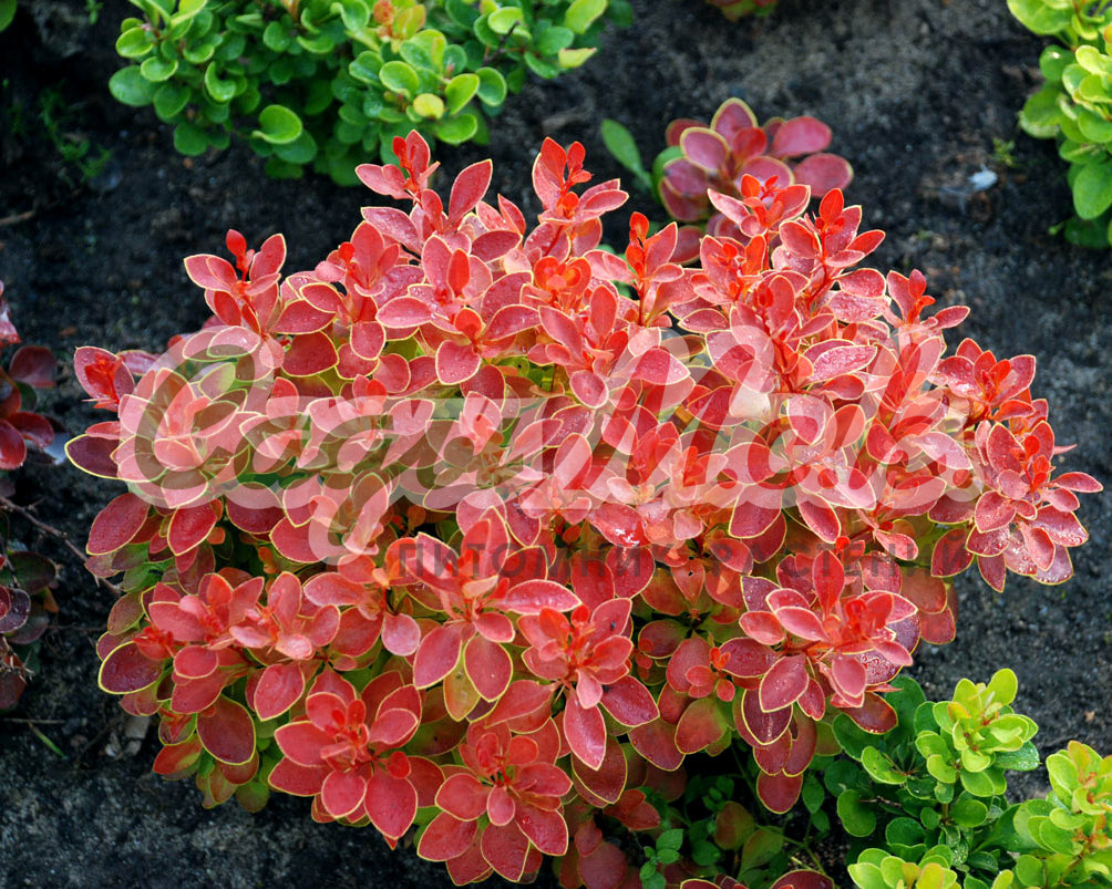 Саженцы барбариса Тунберга Atropurpurea Nana станут украшением любого сада. Этот кустарник низкий, подушкообразный и листопадный, высотой до полуметра. У куста присутствуют маленькие острые шипы. У яйцевидных листьев ярко-красный цвет. Крупномеры Atropurpurea Nana нуждаются в солнечном свете. Их можно высаживать в лёгкой полутени, но наилучшего развития они достигают в солнечных местах. Плоды сохраняются в течение всей зимы, укрывать барбарис на зиму не нужно. Растение не переносит замокания, может перенести небольшую засуху. Саженец хорошо приживается почти в любых условиях.