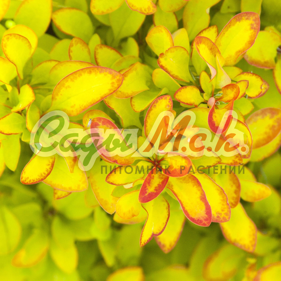 Саженцы барбариса Тунберга Golden Carpet получили своё название не просто так. Этот низкорослый кустарник высотой до одного метра с красиво изогнутыми, раскидистыми ветвями способен насытить ландшафт золотыми красками. Листья у барбариса мелкие приятного насыщенного жёлтого цвета. А осенью они преображаются в оранжево-красный ковёр. Коралловые плоды куста зреют осенью и сохраняются до весны. Крупномеры Golden Carpet можно сажать практически в любую почву, главное – обеспечить хороший дренаж. Весь свой потенциал растения раскрывает при достаточном количестве солнечного света.