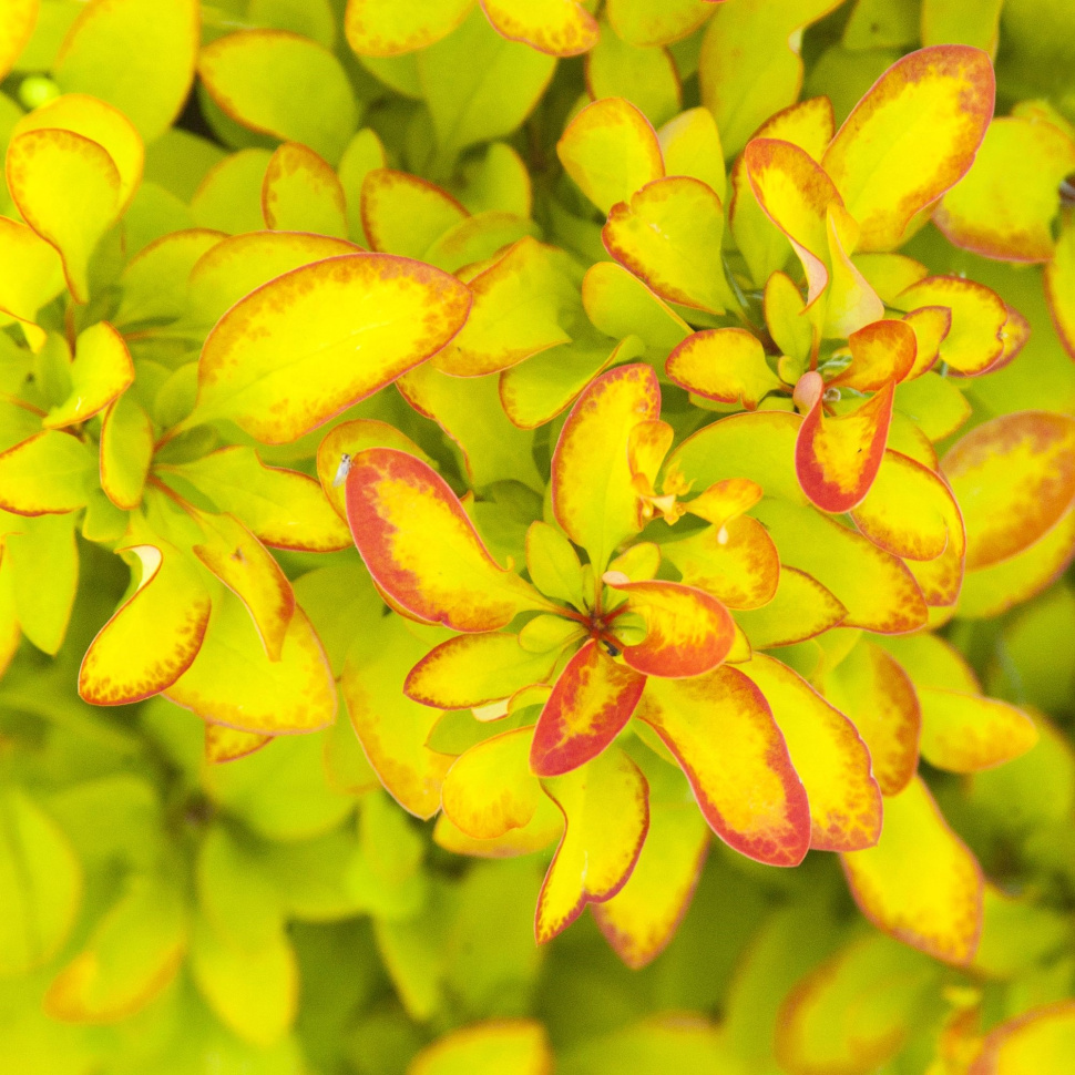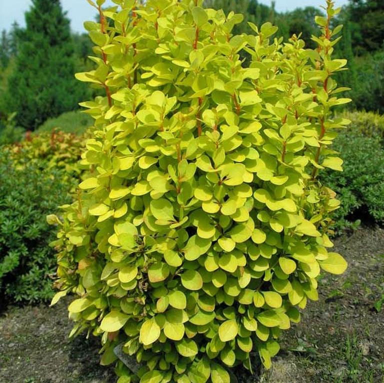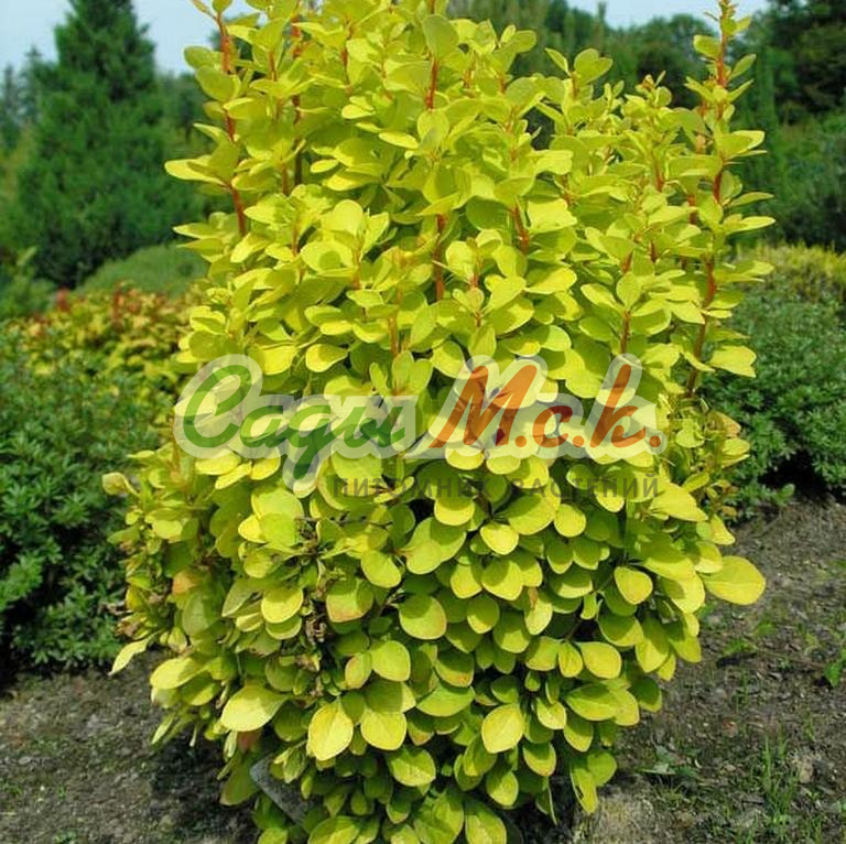 Барбарис Тунберга Maria – декоративный кустарник, оранжево-розовые молодые побеги которого растут вертикально вверх, благодаря чему куст имеет колоновидную форму. При долгом произрастании куст достигает полутораметровой высоты, а крона его обретает полураскидистую форму. Декоративную ценность обрел, благодаря крупным яркоокрашенным листьям – оранжево-красные по весне, желто-золотые с ярко-красной каймой в летнюю пору, оранжево-пурпурные осенью. Во время цветения куст густо покрыт мелкими желтыми цветками. Устойчив к прямым лучам солнца при условии хорошего полива и дренажа. Морозы переносит хорошо и не требователен к кислотности почвы.Благодаря плотной корневой системе, хорошо переносит пересадку.