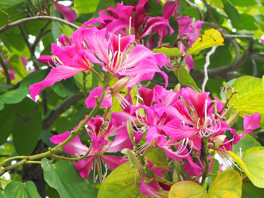 Это небольшое быстрорастущее деревце с округлой кроной и поникающими ветвями достигает в природе высоты 10 м. В нашей зоне выращивается как комнатное. Серцевидные листья приятного для глаз зеленого цвета с сизым оттенком вырастают до крупных размеров – 12 см в длину. Они выглядят очень декоративно, а в период с сентября по ноябрь, до начала листопада, ветви баухинии покрываются похожими на оридеи пурпурными цветами, собранными в небольшие кисти, с восхительным ароматом. Полыхающее пурпурным пламенем дерево выделяется ярким пятном. Каждый цветок достигает в диаметре 10 см и состоит из 5 удлиненных лепестов, окрашенных в широкую гамму оттенков: от пурпурных по краям до почти белых около центральной жилки, с многочисленными штрихами и точечками. Баухиния любит хорошо освещенные места, с прямым солнцем в утренние и вечерние часы, или легкой полутенью. К составу грунта баухиния нетребовательна, однако, почве необходим дренаж. Семена высаживают без предварительной подготовки во влажную почвенную смесь при температуре почвы 25-27°C они быстро прорастают и уже через 5-6 дней появляются всходы. Важно не заглублять семена глубоко в субстрат, а присыпать слоем толщиной около 5мм. Сеянцы развиваются очень быстро, при благоприятных условиях за две недели достигают высоты 10 см, а за 4 месяца могут вырасти на метр и выше. Зацветает растение на 2-3 году жизни.