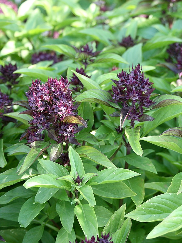 Базилик Siam Queen Thai - декоративное растение высотой до 50 см. Стебли пурпурные. Листья большие, зеленые. Соцветия лиловые, напоминают сирень. Аромат сильный и очень приятный. Сорт отличается высокой урожайностью. Может использоваться как декоративное растение. Страна-поставщик - Нидерланды.