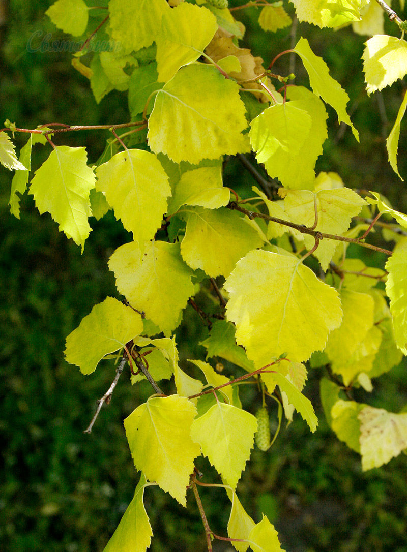 Береза повислая Golden Cloud получила свое название из-за окраски листьев: на протяжении всего периода вегетации листва на березах этого сорта золотисто-желтого цвета, что, конечно, очень разнообразит зеленую массу летнего парка. Словно всплеск солнечного света, береза красиво вписывается в группы лиственных и хвойных деревьев. Не любит дерево засушливых периодов. В такие времена листья березы могут обрести зеленый оттенок. А вот к суровым зимам относится лояльно и прекрасно переживает сильные морозы. Взрослая береза характеризуется 10-метровым ростом, вертикальной кроной ажурной формы. Очень светолюбивое дерево с ярким белым стволом.