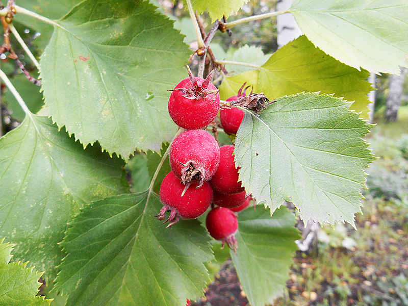 Боярышник Арнольда - небольшое многоствольное дерево, высотой и диаметром кроны 6 м, с шершавой сероватой корой и довольно большими почти ромбическими листьями. Долговечный - 120 лет. Крона шаровидная, средняя. Листья овальные, светло-зеленые, от 4 до 5 см. Цветки плоские, округлые, белые, диаметром 1 см. Плоды крупные, мясистые и вкусные, ярко-красно-оранжевые, съедобные.