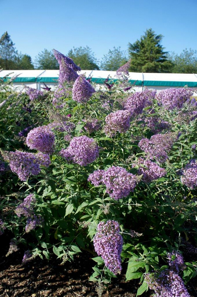 Буддлея Давида Гулливер – очень крупные колосовидные соцветия до 50 см в длину, собранные из мелких сиреневых цветков. Сам куст компактный: ширина 1,2 м, высота 1 м. Сорт с изящной светло-зеленой узкой листвой. Приятный аромат привлекает в сад пчел и бабочек. Обильно цветет с середины лета до сентября на фоне крупных опушенных листьев. Сорт зацветает на 2-3 год жизни, на зиму куст нужно хорошо укрывать. Буддлея привлекательно выглядит в сочетании с низкими кустарниками и травянистыми многолетниками. Это теплолюбивое растение предпочитает солнечное место и питательные почвы
