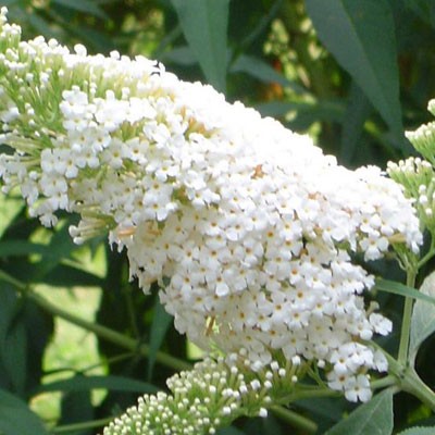 Будделея Давида Уайт Букет выделяется пышными, раскидистыми ветвями, увенчанными белоснежными гроздьями цветоносов. Жемчужный наряд растения очаровывает и приковывает взгляд. Живые изгороди с участием White Bouquet смотрятся нежно, а в групповых посадках, кустарник добавляет шарма и изысканности.