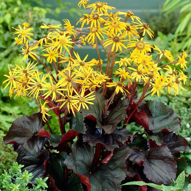 Бузульник зубчатый Миднайт Лэди имеет округлые, блестящие фиолетово-черные листья. Цветет в середине лета, золотисто-желтыми ромашками. Теневыносливые и влаголюбивые растения, в саду они лучше развиваются в полутени, хотя при обильных и регулярных поливах неплохо чувствуют себя на солнце. Бузульник зубчатый Миднайт Лэди требуют богатой питательными веществами, влажной почвы. Они растут и на тяжелых, не дренированных глинистых почвах, переносят временное затопление. Эффектны в групповой посадке, миксбордерах и у водоемов.