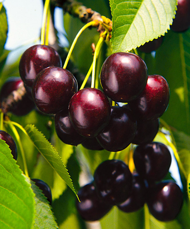 Черешня Квин Мери - карликовое дерево колоновидной формы. Ствол плотный, мощные, боковые ветви короткие. Высота - до 2,5 метров (достигает ее за 5 - 6 лет). Плодоносить начинает со 2 - 3 года после посадки, стабильное плодоношение с 5 года. Плоды располагается равномерно, "облепляя" почти весь ствол..