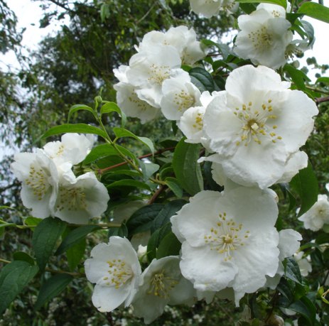 Чубушник Beauclerk - листопадный кустарник высотой до 120 см, с широкой, раскидистой кроной. Листья, длиной до 5 см, эллиптические, заостренные на верхушке. Цветки крупные (диаметром до 7,5 см), белоснежные, с розово-пурпурной серединкой.