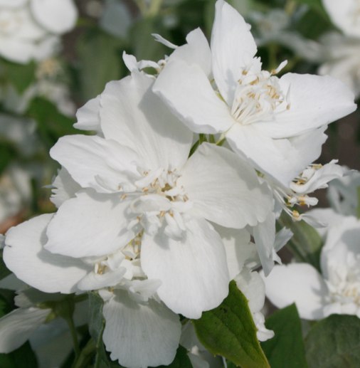 Чубушник Elbrus - куст высотой 1,5 м, раскидистый. Листья темно-зеленые. Цветет сорт очень обильно. Продолжительность цветения 25 дней. Цветки кремовато-белые, махровые, собраны в соцветия ( длиной около 6,5 см). Их диаметр - 5 - 5,5 см.
