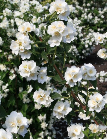 Чубушник Snowballs- очень красивый сорт. Куст высокий - 1,2-1,7 м. Цветение очень обильное. Соцветия плотные, многоцветковые, напоминающие хлопья снега. Цветки белые, чашеобразные, ароматные.