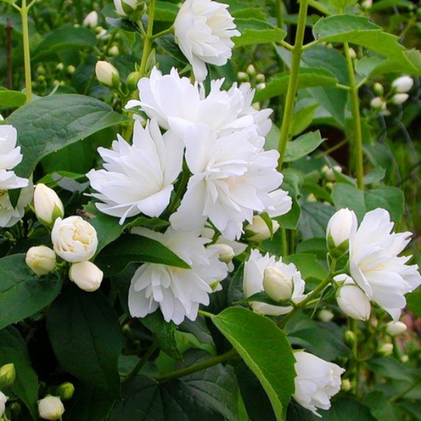 Саженцы чубушника Girandole вертикально растущие, их отличительной чертой является густая крона со свисающими ветвями. Куст вырастает до 1,5 метра в высоту. Чем старше кустарник, тем более широкой становится его крона. Имеет небольшие листья яйцевидной формы, опушенные с обеих сторон, темного зеленого цвета.Цветение данного вида начинается в конце весны. Цветков много, у них очень нежный запах. В одном соцветии может находиться до семи цветков. Диаметр цветков около 3,5 см. они белого цвета, густомахровые.Перед посадкой крупномера Girandole требуется дренировать почву. Куст солнцелюбив, но может расти и в тени, однако будет слабеть. Используется при создании цветовых композиций.