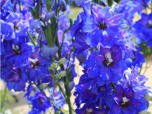 Дельфиниум Atlantis - красивоцветущий, морозостойкий, прямостоячий многолетник. Высота цветоносов - от 1 м. Период цветения - июнь-сентябрь. Цветки тёмно-фиолетово-синие, простые со шпорцами, до 2 см в диаметре, собраны в кисти.