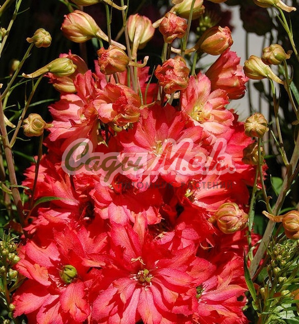 Рассада дельфиниума культурного White with Dark Bee привлекает роскошной красотой пышных махровых цветков, украшенных темными бабочками по середине. Это создает очень эффектное сочетание, которое прекрасно впишется в любой цветник или клумбу. Обрезайте отцветшие соцветия, чтобы обеспечить декоративность растения и получить возможность восхищаться красотой повторного цветения. Для лучшего роста рассады выбирайте солнечные участки, на которых высокое растение защищено от ветра.Саженец дельфиниума культурного White with Dark Bee в среднем вырастает до 90 см. Разделение и рассаживание этого многолетника выполняют раз в 4-6 лет в зависимости от природных условий.
