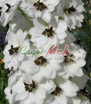 Новозеландские гиганты — признанные мировые законодатели селекционной моды среди дельфиниумов. Исключительные декоративные качества, зимостойкость, долговечность и неприхотливость, сделали эти сорта самым желанным приобретением многих профессионалов и садоводов-любителей. Растения рослые, более 2 м, с прочными здоровыми цветоносами, но все же нуждается в опоре. Необыкновенно крупные цветки, поражающие воображение изысканной игрой белого и салатового оттенков, собраны в плотное, буквально набитое соцветие. Первое цветение происходит на второй год после посева, в июне-июле. Повторное — в августе. Дельфиниумы предпочитают солнечные, защищенные от ветра участки с плодородными нейтральными почвами и хорошим дренажем (не выносит переувлажнения). Семена проращивают слегка присыпав почвой (лучше стерильной). Для получения дружных всходов, семена рекомендуется выдержать в холодильнике в течение недели. Посевы оберегают от сквозняков и поливают с осторожностью, из распылителя. Всходы появляются при температуре не выше +15оС через 20-23 дня. Окрепшие растения высаживают весной в открытый грунт, после окончания заморозков, на расстоянии 0,5-1,0 м. Нежелательно высаживать растения вплотную к высоким стенам без опоры, т.к. сильный ветер может сломать стебли. Новозеландские гиганты морозостойки, отлично переносят даже суровые зимы без укрытия.