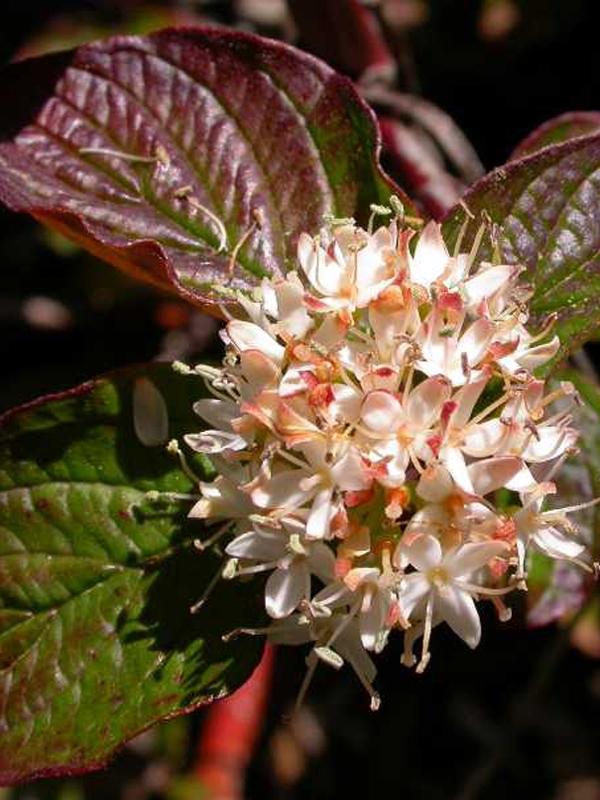 Саженцы дерен Kesselringii, вырастает крупномерным кустарником, до 2м в высоту и ширину. Крона большая и объемная. Ветки растут только кверху, однако побеги снизу свисают вниз, тонкие красновато-черного оттенка. Эти вариации, невероятно красиво смотрятся осенью или весной.Листва сочно-зеленая, овальной формы. Слегка сжатые с просвечивающими жилками не более 12 см в длину. Цветет очень пахучими, бежевыми цветками, которые собраны в дугообразные щеточки.Ягоды, созревая, обретают белый цвет, а ближе к осени становятся голубыми.Саженцы неприхотливы, хорошо переносят тень, но лучше себя проявляет на влажной, дренированной почве.