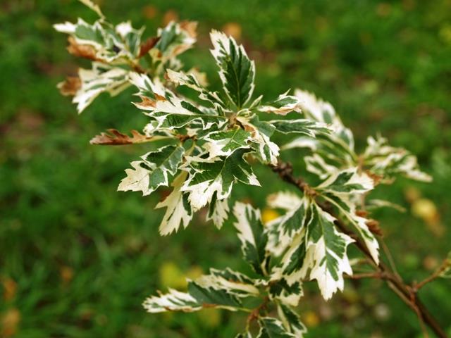 Дуб черешчатый «Вариегата» отличается зелено-былым окрасом листьев. Листья у него некрупные, скорее даже мелкого размера. Ствол у него коричневого цвета. Крона у дуба достаточно раскидистая. Цветки у него, как и многих дубов, мелкие. Желуди тоже небольшого размера. Вырастает дерево в высоту 30-40 метров.