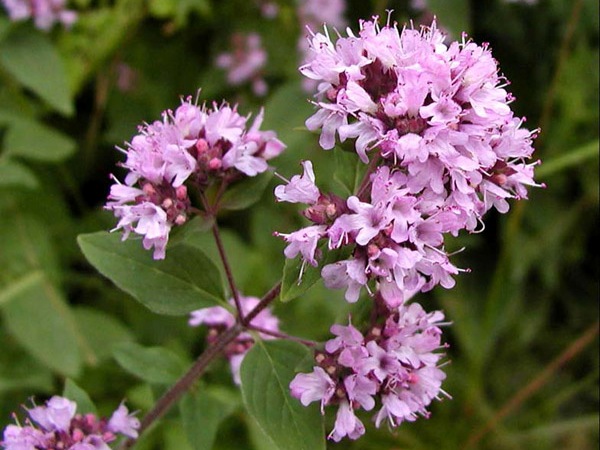 Саженец душицы обыкновенной может вырастать вплоть до 90 см. Аккуратные розово-лиловые цветки с приятным запахом собраны в плотные метелки.