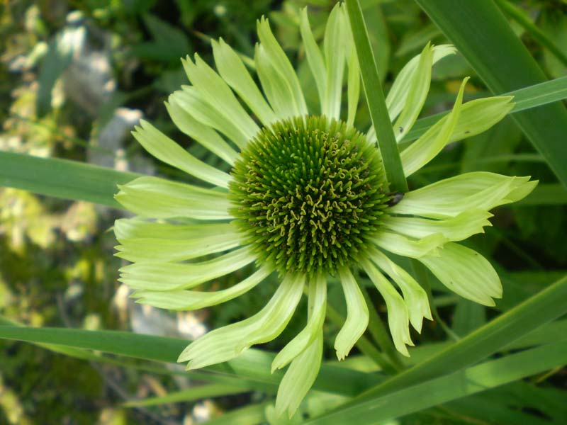 Эхинацея пурпурная Green Jewel - многолетнее растение высотой до 1 м. Листья темно-зеленые, шершавые, прикорневые, длинночерешковые, широкоовальные, по краю - зубчастые; стеблевые - сидячие, ланцетные. Цветки с темно-зеленой серединкой, окруженой светло-зелеными лепестками, собраны в соцветия-корзинки. Цветет сорт с июля по сентябрь. Растет быстро.
