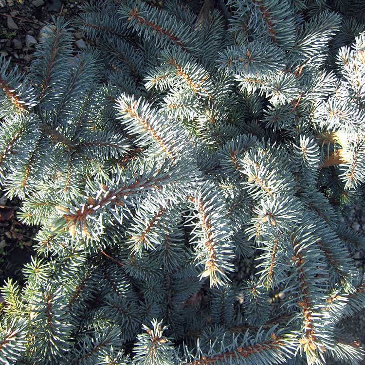 Крона у ели пирамидальная или коническая, правильной формы, плотная. Ветви пологие, пропорциональные. Хвоя голубовато-зеленая, иногда со стальным отливом из-за воскового налета, колючая и жесткая, длиной в 2-3 см. Шишки коричневые, длиной до 10 см, с семенами, которые используют для выведения других сортов.Растет ель «Misty Blue» медленно, к 10 годам достигает высоты в 4-5 метров, к тридцати – 25-30 метров. Диаметр кроны увеличивается до 4-5 метров. Голубой окрас хвои с возрастом не пропадает, но серебристого цвета в нем становится больше.