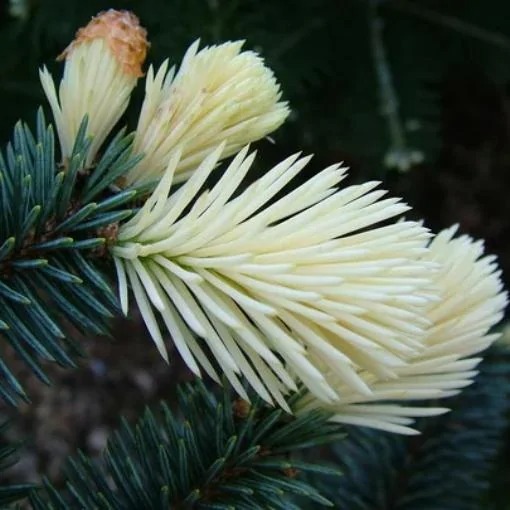 Ель колючая голубая Нимец (Picea pungens Nimetz) – это очень маленькая ель, вырастающая к 10-ти годам около одного метра с диаметром кроны до 70 см. Хвоя ярко-голубая. Её стальную хвою великолепно весной оттеняет прирост яркого, кремово-белого цвета, которая добавляет декоративности. Любоваться этим великолепием можно около двух месяцев. Цвет держится до середины лета, а затем оттенок прироста начнёт изменяться, постепенно сливаясь с голубой хвоей предыдущего года.