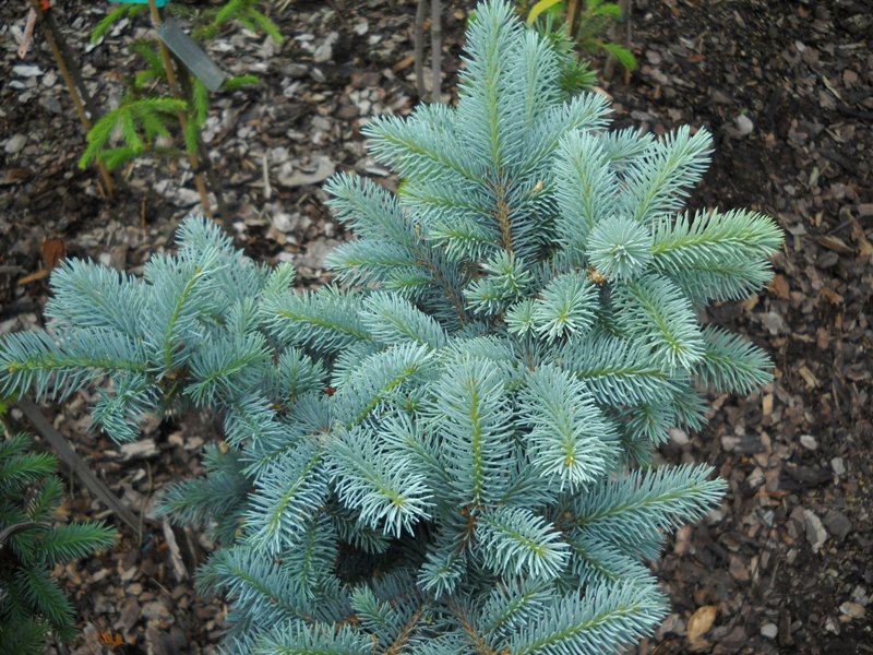 Сорт ели колючей Хото хорошо подходит для солитерных посадок, выделяясь на фоне газона и темно-зеленого фона светлой хвоей, как будто припорошенной снегом. В качестве цветового акцента ель этого сорта можно сажать и в хвойных композициях