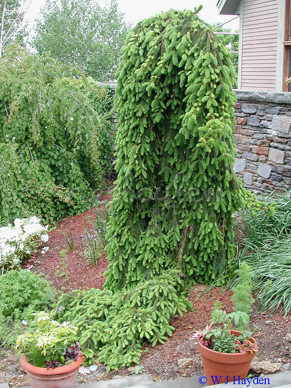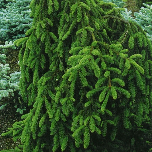 В высоту деревце достигает 8 м, крона узкая, развивается неравномерно, обычно ее диаметр не превышает 3 м. Ежегодно ель увеличивается на 10 см в высоту и 5 см в ширину. Главная особенность крупномера обыкновенная Inversa – ниспадающие, обвисшие ветки и заваливающаяся верхушка. Хвоя блестящая, толстая, темно-зеленого оттенка. Саженцы хорошо переносят сильные морозы, не терпят засухи, но и к переувлажнению относятся негативно. Ель светолюбива, но приживается и в полутени.