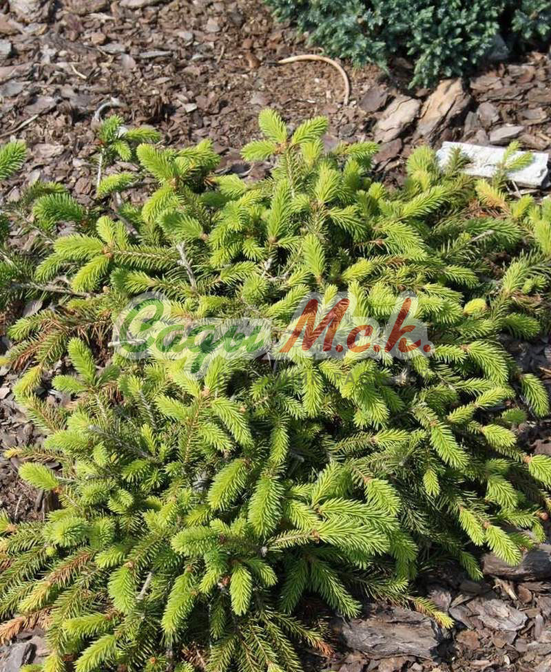 Ель обыкновенная Procumbens - карликовый кустарник до 0,5 м высотой и 2-3 м шириной. Крона плоская, широкая. Ежегодный прирост в высоту 3-4 см, в ширину 10 см. Хвоя густая, очень жесткая на ощупь, ярко-зеленая, 10 - 17 мм длиной (самая длинная среди всех плоскорастущих форм). Теневынослива, но лучше развивается при достаточном освещении. Требования к почве и влаге невысоки. Переносит временное избыточное увлажнение. Морозостойка. Отлично подойдет для одиночных посадок в небольших садах, альпийских горках, альпинариях.