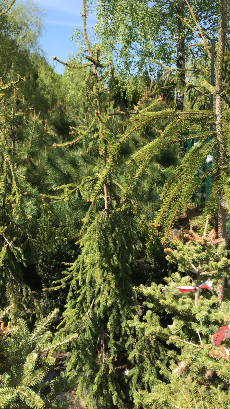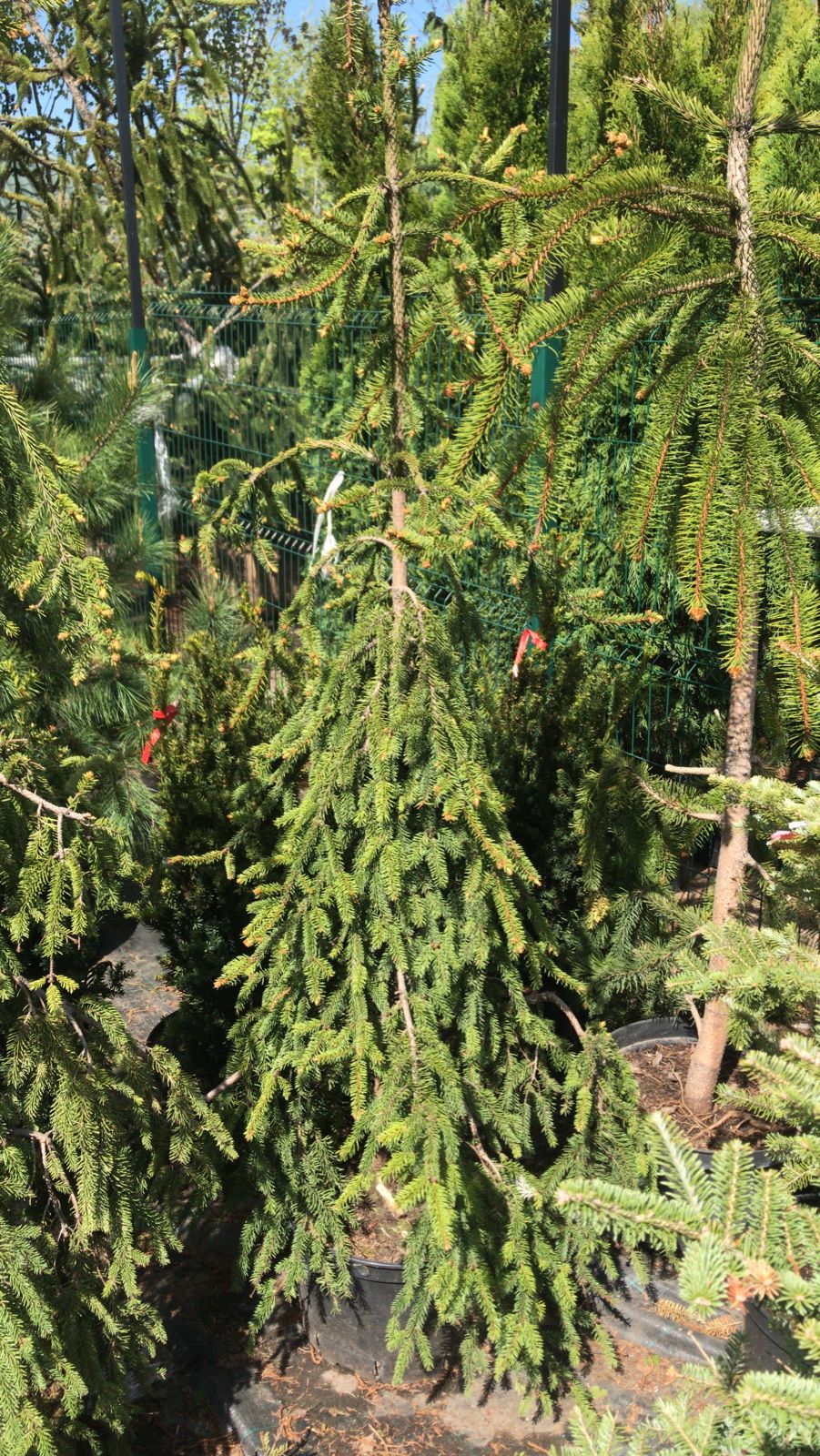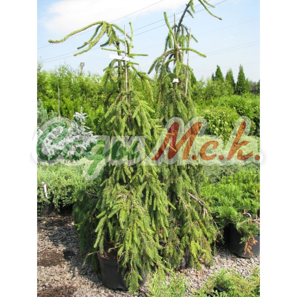 Медленно-растущее хвойное дерево с плакучей колоновидной формой кроны. Ветви и побеги повислые, ниспадающие вниз, нижние ветви красиво распластаны шлейфом по земле. Верхушка имеет заваливающийся характер роста.