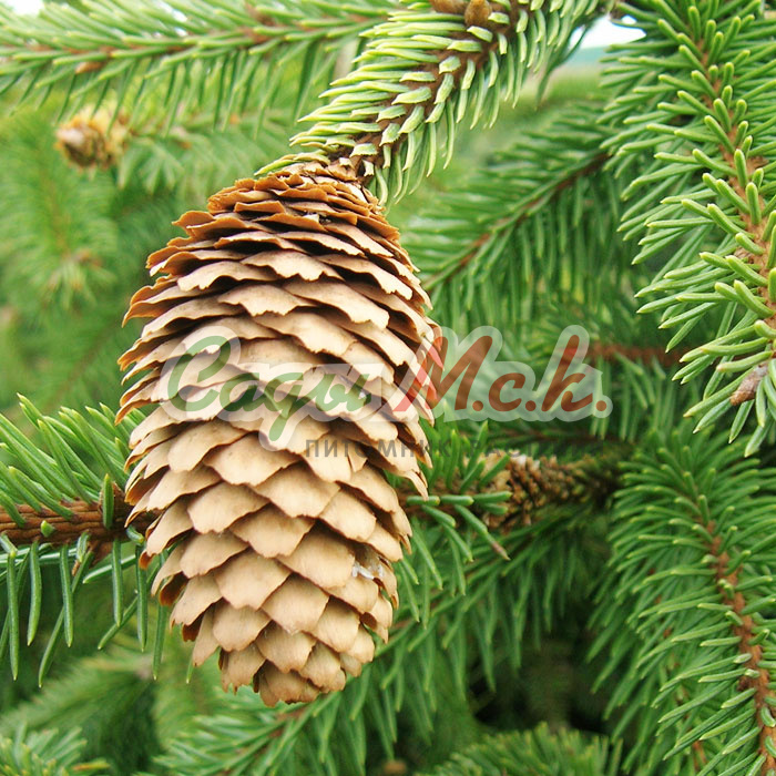 Вечнозеленая красавица вырастает высотой до 30 м, поэтому ее высаживают в основном в парках, хотя в одиночных посадках она уместно смотрится и в садах. Крупномер ели обыкновенной отличается пирамидальной формой кроны и мутовчатым ветвлением. Побеги покрыты густой, жесткой и колючей хвоей темно-зеленого цвета. Ель выдерживает сильные морозы, неприхотлива в выращивании. Саженцы хорошо приживаются на открытых солнечных участках и в полутени. Дерево переносит засуху, не терпит переувлажнения.