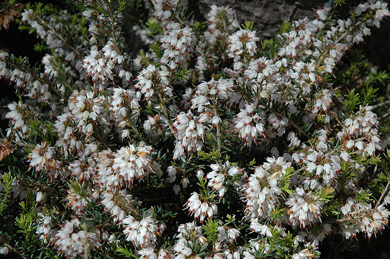 Эрика Silberschmelze - вечнозеленый, распростертый кустарник с шаровидной кроной. Высота до 40 см, диаметр кроны до 30 см. Листья темно-зеленые (осенью серо-зеленые). Цветет в апреле-мае, цветки белые с легким медовым запахом.