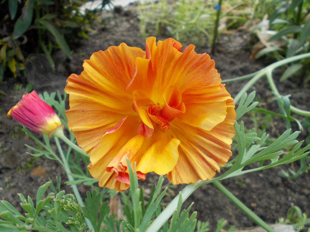 Эшшольция Абрикосовый Шифон – первая однотонная окраска махровой эшшольции! Насыщенные оранжево-красные цветы со слегка гофрированными лепестками отлично сочетаются в смешанных посадках с другими видами растений. При этом эшшольция – радость для садоводов, чьи почвы на участке супесчаные и песчаные! Она отлично переносит засуху, а потому подойдёт и для тех садов, куда хозяева приезжают достаточно редко. Цветение её начинается в июне и проходит вплоть до начала осени. А значит – неприхотливый сад на весь сезон вам будет обеспечен!