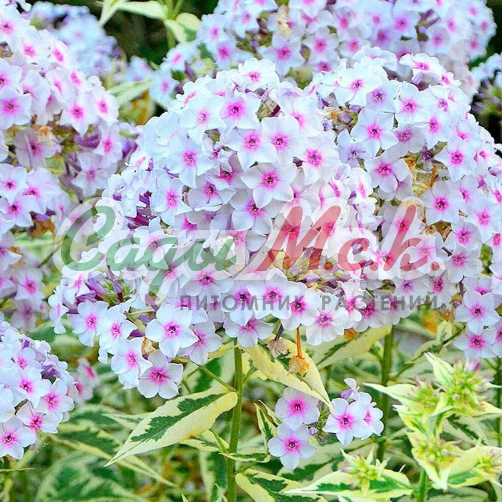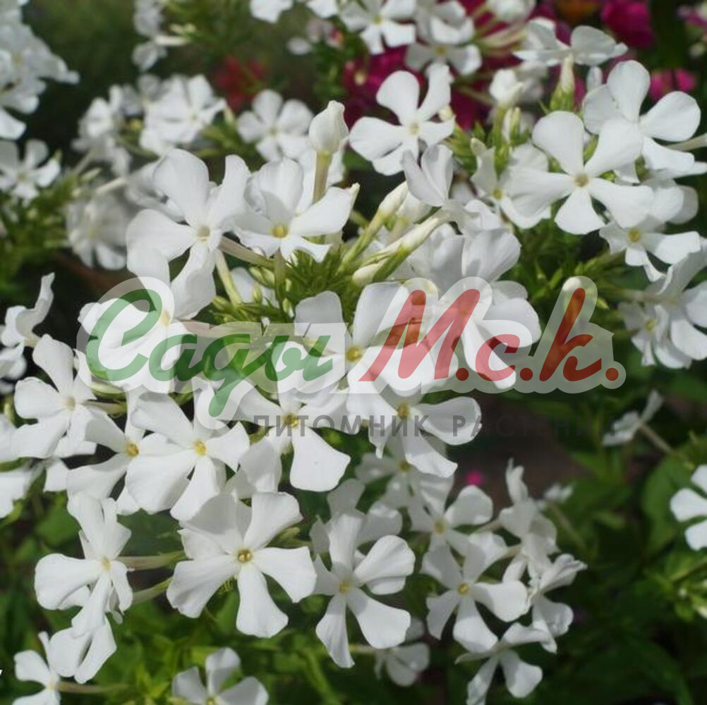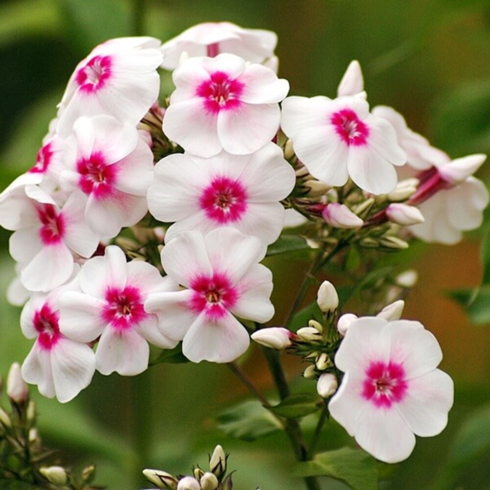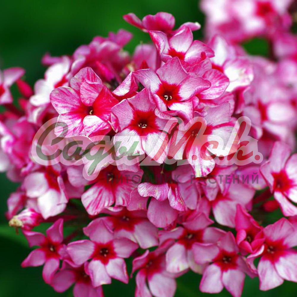 Метельчатый флокс Graf Zeppelin белый с малиновым колечком. Соцветие полушаровидное, среднего размера. Куст компактный, прямостоячий. Размер цветка 3.4-4 см. Высота куста 65-80 см. Срок цветения июль-август.