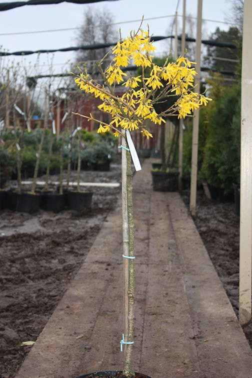 Саженцы форзиции Линвуд Голд (Lynwood Gold) вырастают плотным, крупным кустиком около трех метров в высоту с поникающими стеблями. Листва большая, яйцевидной формы с небольшими зубчиками по краям и имеет светло-зеленый окрас. Осенью листики становятся желтыми, фиолетовыми. В апреле-мае зацветает желтыми цветочками, которые обильно покрывают ветви. Плюсы форзиции Линвуд Голд: - зимоустойчива - неприхотлива - цветение распускается раньше листвы Крупномеры форзиции Линвуд Голд могут расти в полутени или в солнечных местах участка. Красиво смотрится возле беседок, в каменистых декорациях