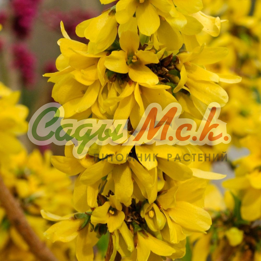 Форзиция Микадор - листопадный кустарник с супротивными листьями. Очень обильно цветущий сорт форзиции. Высота до 1,5 м. Цветки темно-желтого цвета, распускаются весной до появления листьев, цветение обильное. Предпочитает плодородные почвы. Не выносит длительной засухи. Нуждается в посадке на солнечном, защищенном от северных ветров месте. Форзиция хорошо зимует и весной обильно цветет, если на зиму кусты пригибать к земле, чтобы ветви были укрыты снегом до наступления сильных морозов. Используется как ранне- и красиво цветущий кустарник при создании весенних композиций