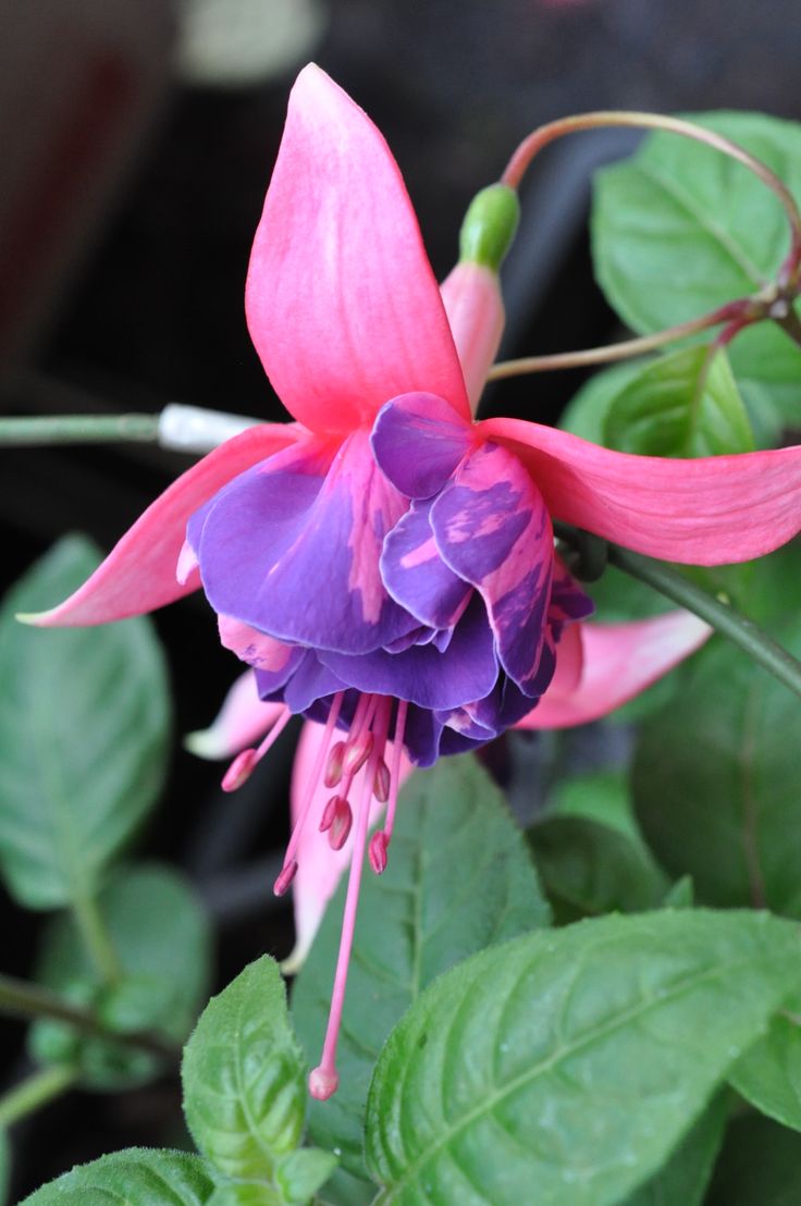 Фуксия Броквуд Джой - крупноцветковая ампельная фуксия. Чашелистики белые, со временем розовеющие. Юбочка наыщенно-фиолетовая с яркими бело-розовыми мазками. Цветы густомахровые, округлой красивой формы.