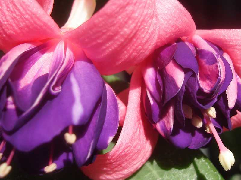 Кустовая форма. Чашелистики ярко-розовые, закручиваются колечками. Юбочка фиолетовая махровая с яркими розовыми мазками. Обильное цветение.