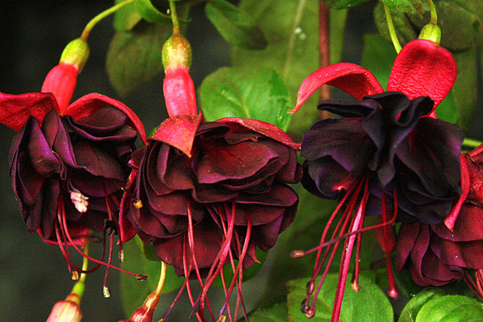 Фуксия Рохис Квин (Королева рохи) — кустовая форма фуксии. Чашелистики красные. Юбочка насыщенно-фиолетовая с красными мазками. Цветы махровые , среднего размера. Очень красивая темная фуксия